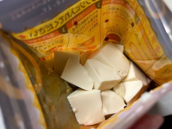 豆腐を入れたらしっかりとチャックをして閉めればOK。あとは500Wで4分30秒電子レンジ調理で完成だ。