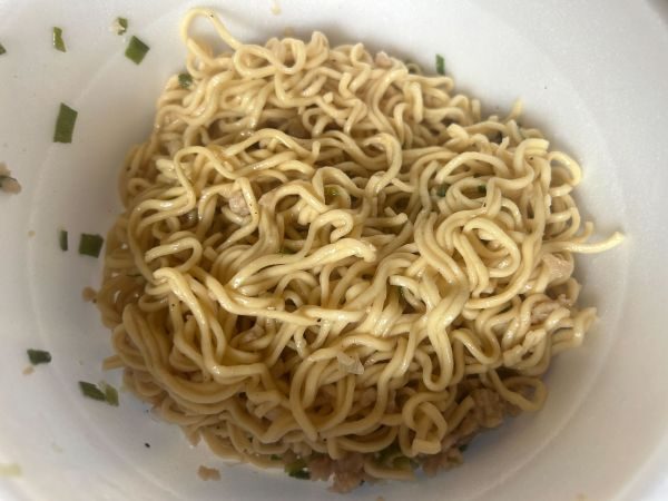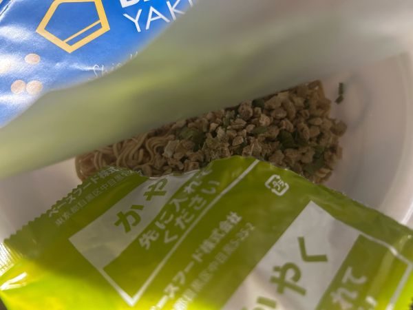 湯切り後は油とスパイスを入れよく混ぜれば出来上がり。今回のBASE YAKISOBAは塩焼きそばとなっていて、チキン、ホタテ、ねぎの風味が感じられるシンプルでオーソドックスなおいしさに、ペッパーを効かせることでばバランスが引き締まる。麺はつるつるもちもちで全粒粉とは思えないおいしさ。全部食べても298kcalで罪悪感なく、かつ栄養がぎゅっと詰まっているのが嬉しい。忙しい日に手軽に食べられるのもいいが、保存食としても良いのではないだろうか。