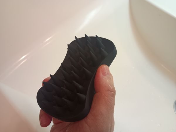 このスキャルプブラシ、手に取るとまず感じるのは絶妙なフィット感。手のひらサイズで、指にしっかりと収まる形状。重すぎず、軽すぎず、まるでプロの指先を再現したような設計だ。素材は柔らかすぎず、硬すぎないシリコン製。