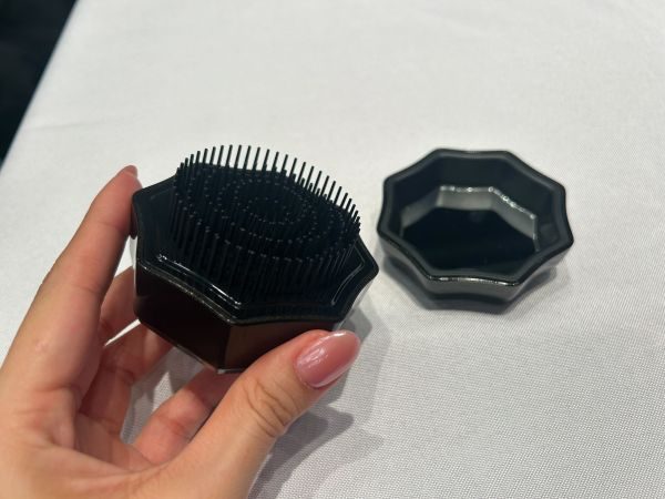 平面でなくアーチ構造で、内側にもしっかりと届き、髪の根元からふんわり整えてくれる。蓋は鏡にもなっているので、出先でもヘアスタイルを直すのも便利だろう。