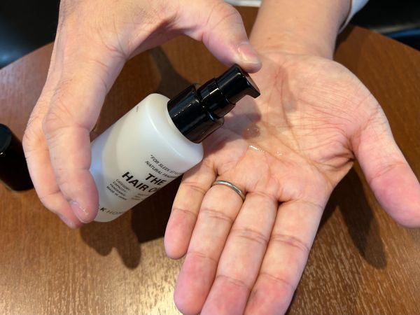では、実際に手の平に出してスタイリング剤として使っていこう。美容液のように濃密でありながら、指通りはなめらかで、べたつきのない仕上がりが特徴。