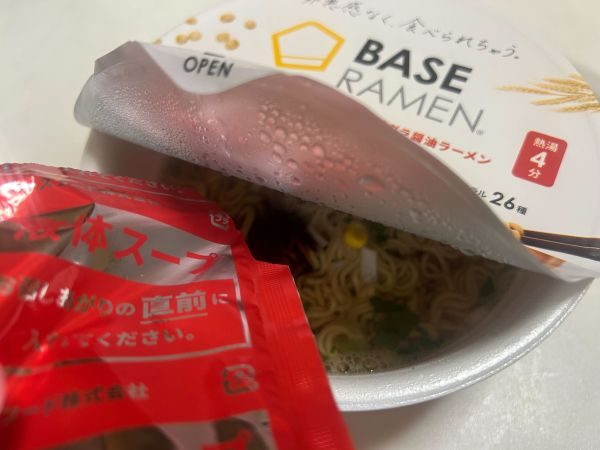 今回、発売した「BASE RAMEN」シリーズは、待望の汁ありタイプのカップ麺。ご自宅や職場でも、ランチや夕食、夜食としてもおすすめの商品。何よりも常識を覆す罪悪感のないカップ麵。カップラーメンなのに罪悪感がない、一番うれしい要素なのではないだろうか。
