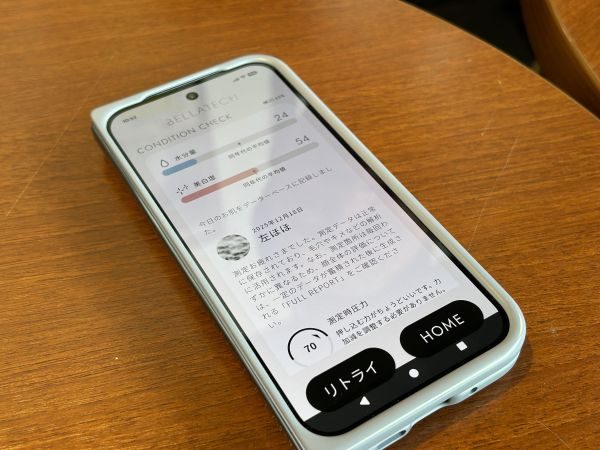 BELLATECHが独自に開発した「SKIN SCANNER」は、4つの高感度センサーを搭載し、わずか1秒で肌の状態をチェックできるスキャナー。肌の水分量やキメ、美白度などを、手のひらサイズのコンパクトな機器でしっかり測定してくれる。測定結果は専用アプリに自動で記録。その日の肌コンディションをすぐに確認できるのはもちろん、1ヶ月ごとの変化を振り返って自分の肌の傾向を知ることができる。