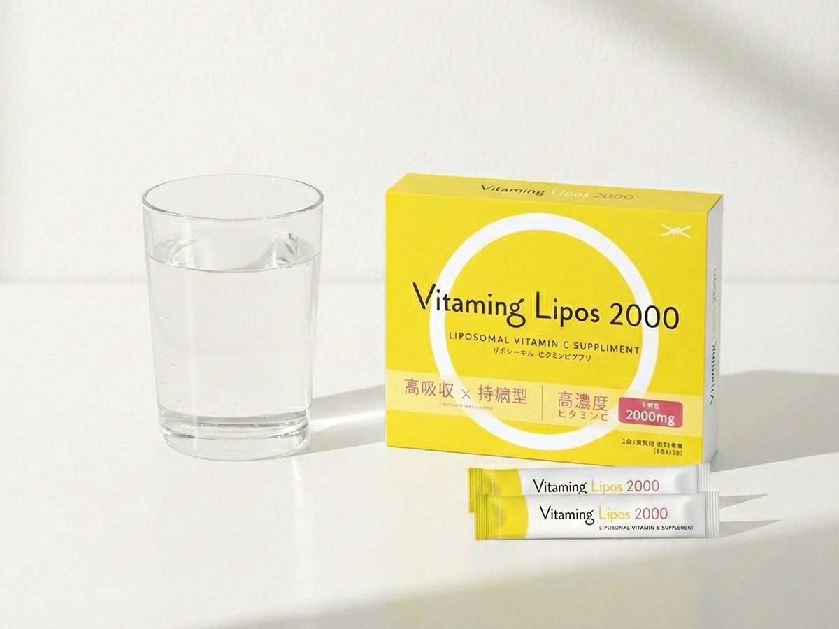 「Vitaming Lipos」は、1包でレモン約100個分に相当するビタミンC 2,000mgを配合した顆粒タイプのサプリメント。リポソーム技術が生み出す高吸収・持続型の処方で、忙しくても輝き続けたいあなたの美容と健康を優しくサポート。