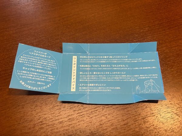 外装のパッケージの内側にはワンポイントアドバイスや使い方の注意が書かれている。このような細かな心遣いが嬉しくなる。