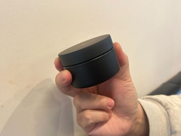 真っ黒で何も書かれていないのが、かっこいい。コロッとしたサイズ感で持ち運びにも便利なのではないだろうか。